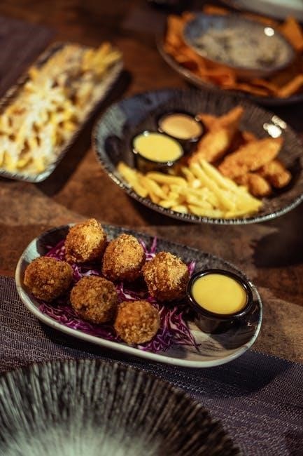 Tyson nuggets are versatile and can be served in various ways. Pair them with dipping sauces like BBQ‚ honey mustard‚ or ranch for added flavor. Serve alongside fresh vegetables‚ fries‚ or a salad for a balanced meal. Kids love them with mac and cheese or mashed potatoes. For a quick snack‚ enjoy them on their own or in a wrap with your favorite toppings. Tyson nuggets also work well in meal prep or as a protein-packed addition to a Caesar salad. They’re perfect for busy families or casual gatherings‚ offering convenience and delicious taste in every bite.