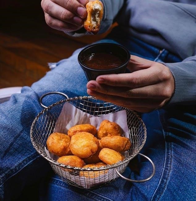 Shaking the basket halfway through cooking ensures Tyson nuggets cook evenly. Gently shake the basket to redistribute the nuggets‚ preventing overcrowding and promoting uniform crisping. This step is crucial for achieving a golden-brown texture on all sides. For larger batches‚ you may need to shake more frequently. Avoid vigorous shaking to prevent breaking the nuggets. This simple step enhances the overall quality and appearance of your air-fried Tyson nuggets‚ making them perfectly cooked every time.